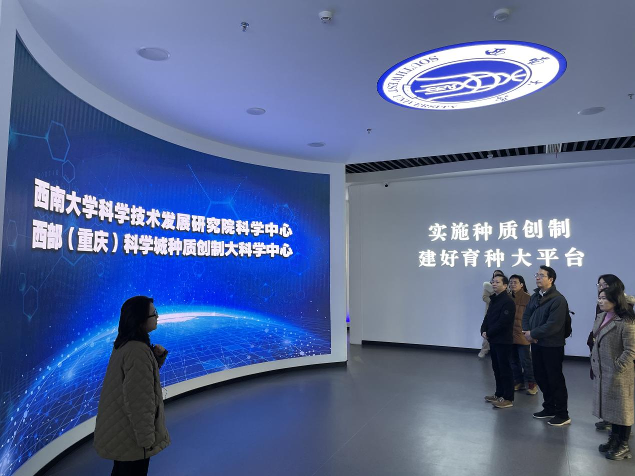 在西部(重庆)科学城种质创制大科学中心,党员同志们详细了解了中心是如何围绕成渝地区双城经济圈、西部(重庆)科学城建设国家战略,在长江上游种质资源发掘、收集、保护、创制与利用中发挥重要作用。