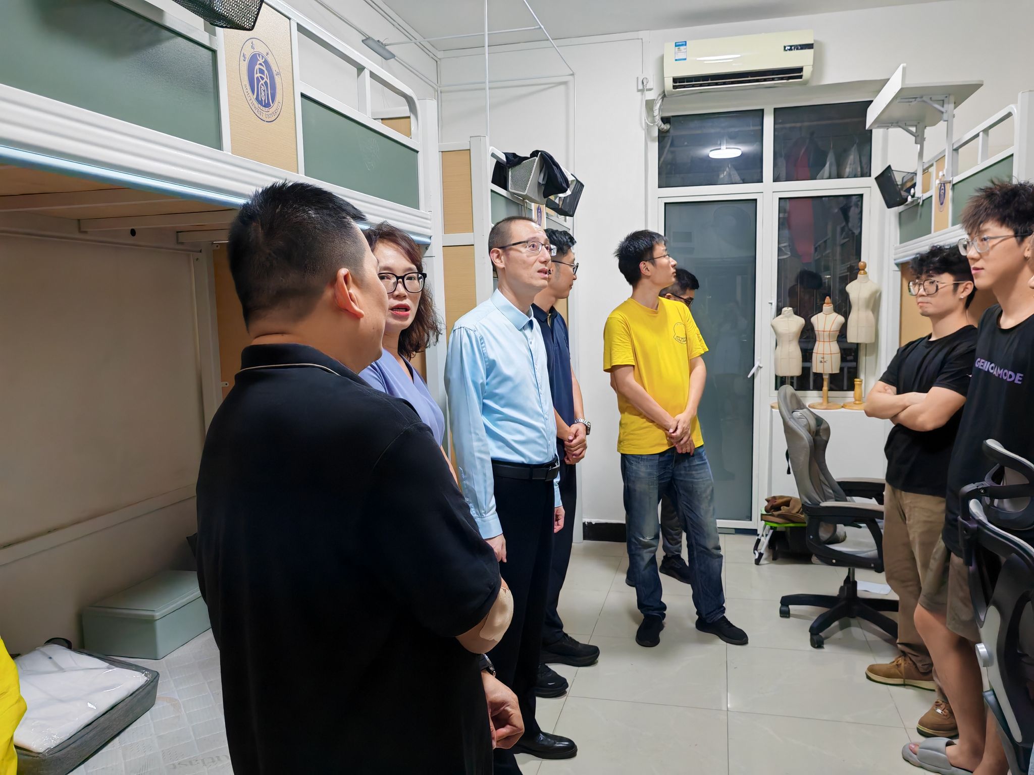 发布时间: 2025-09-04 17:07:08 已阅读:秋风迎至,新学启程,为深入了解动漫 学生的返校情况和宿舍回迁情况,8月31日晚,校党委副书记黄杰、党委学生工作部部长许克松、校团委书记于涛等一行来到动漫 茶园三舍学生寝室关心学生回迁情况和新宿舍使用情况。在学生寝室,黄书记详细了解了学院学生的返校报到情况,对宿舍的新家具、安全设施、卫生状况等方面进行了检查,并与同学们亲切交谈,询问了大家的学习生活情况,提醒大家要尽快调整自身状态,调整作息,以适应新学期的学习和生活,并对大家新学期的学习规划进行了指导。