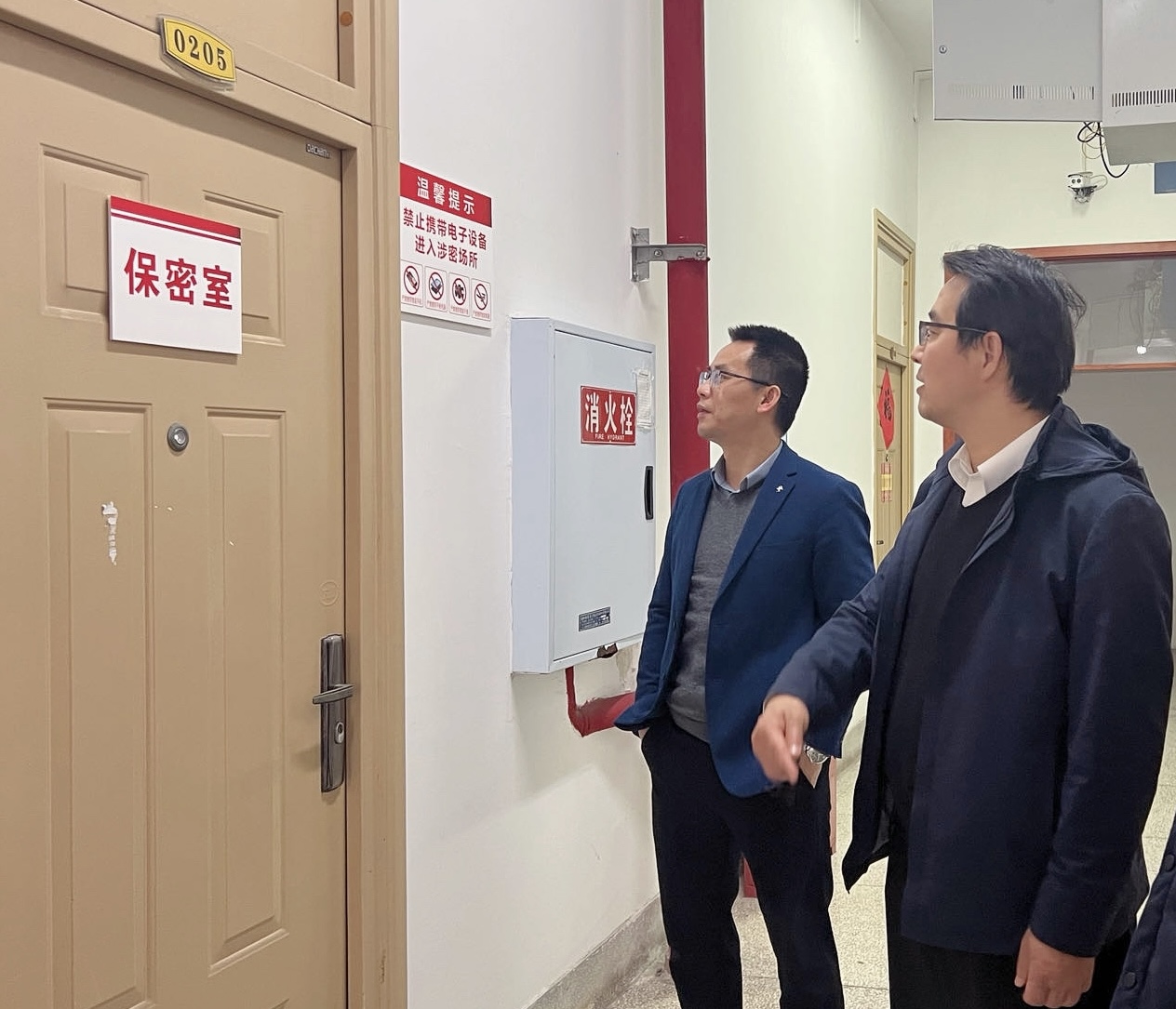 在检查过程中,张书记查看测试了保密室的专用电脑、手机屏蔽柜等硬件设施,详细询问了视频监控等预警设备的运行状况,仔细翻阅了保密室的相关工作记录台账。