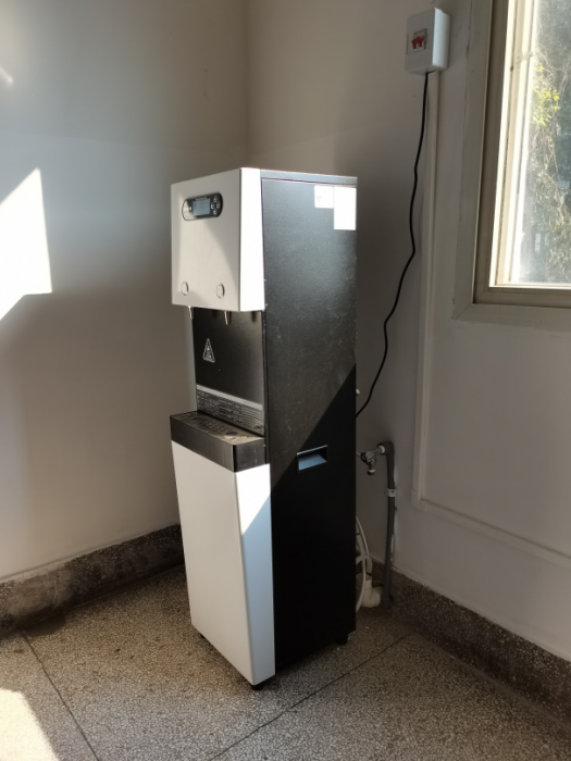 为改善师生饮水难的情况,学院新安装4台变频速热直饮机,其分布为45教1台,48教1台,33教2楼和3楼各1台。如今,师生出教室、实验室、办公室后,不过三五步就能取用纯净水,还能自主选择取用热水,十分便利。