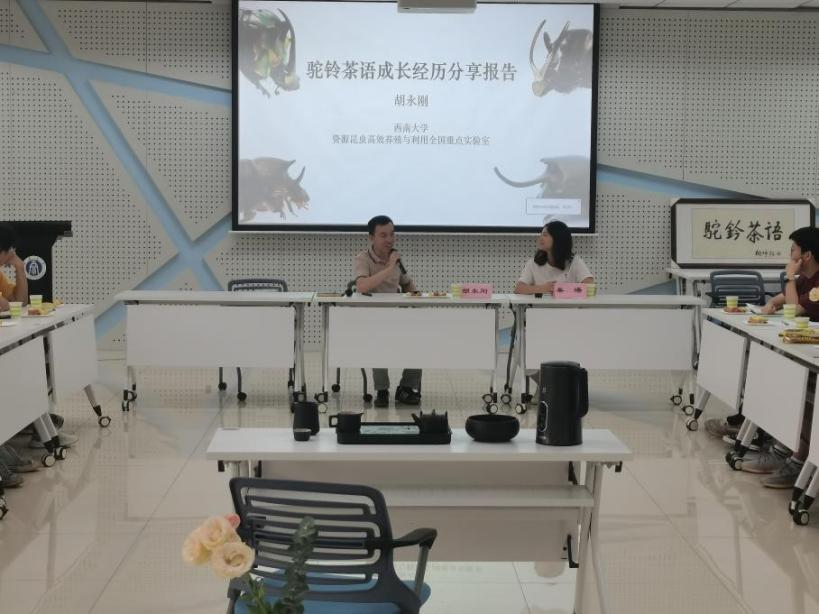 发布时间: 2024-05-23 18:33:46 已阅读:深入开展学习习近平新时代中国特色社会主义思想,深化对社会主义现代化建设的教育、科技和人才战略的理解,5月17日下午,动漫 党委举办了第十三期“驼铃声中聚灵秀,青年才士筑未来”驼铃茶语党建品牌活动。本次活动由资源昆虫高校养殖与利用全国重点实验室教授胡永刚老师担任主讲嘉宾,学院党委组织员秦瑒老师及50余名研究生、本科生参加活动。活动由学院党委新时代丝路驼铃党员引航队承办。