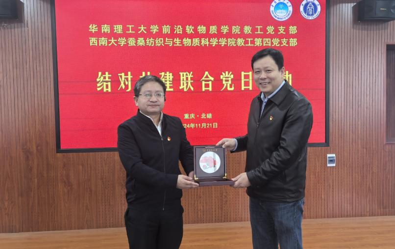 在发言交流环节,双方党员同志就党建与事业融合发展的具体做法、本科生和研究生人才培养体系建设等方面进行深入探讨。华南理工大学前沿软物质学院教工党支部向学院教工第四党支部赠送党支部联谊纪念礼物。