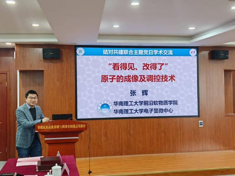 华南理工大学前沿软物质学院教工党支部张辉教授作了主题为《“看得见、改得了”——原子的成像及调控技术》的科研报告,他指出要深入贯彻落实习近平总书记关于发展新质生产力和未来产业建设布局的重要指示精神,进一步从布局科技创新和建设产业生态方面出发,推进原子级制造创新发展,打造原子级制造产业创新高地,使原子制造平台既可以“看得见”,又能“改得了”,加速推动原子级制造科技创新和产业创新深度融合发展。