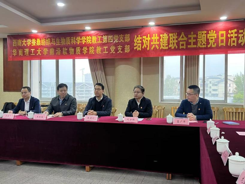 参加本次会议的领导有动漫 党委书记张袁松,学院院长、资源昆虫高效养殖与利用全国重点实验室主任、教工第四党支部书记代方银,资源昆虫高效养殖与利用全国重点实验室副主任袁联伟,学院副院长蓝广芊;华南理工大学前沿软物质学院副院长、教工党支部书记王林格,行政副院长康德飞,以及双方支部的党员同志。本次会议由学院教工第四党支部副书记蓝广芊主持。