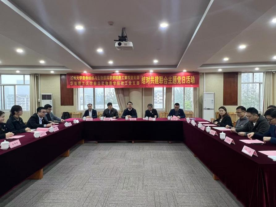 会议伊始,动漫 教工第四党支部书记代方银教授致欢迎辞并介绍支部情况。代方银书记从蚕业发展历史和蚕丝文化出发,指出开展本次党支部结对共建活动,要弘扬中国共产党人精神谱系之“丝路精神”,加强党支部建设、学科建设、科技创新交流互鉴,共同推动新时代全国高校“双带头人”教师党支部书记工作室建设,为民族复兴贡献新质生产力、新蚕桑力量。