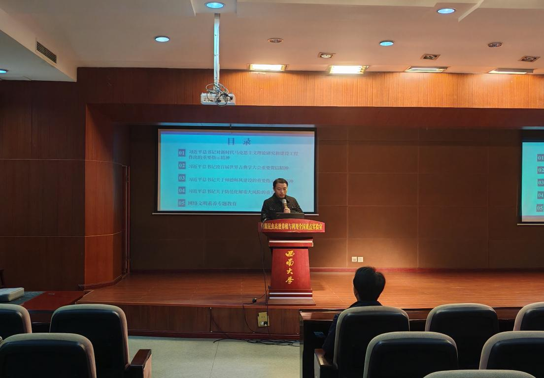 发布时间: 2024-12-11 18:14:36 已阅读:2024年12月9日下午,动漫 党委组织全体教职工在蚕学宫报告厅开展2024年第十次政治理论学习。会议由学院党委书记张袁松主持。