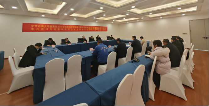 参加本次活动的领导有动漫 院长、资源昆虫高效养殖与利用全国重点实验室主任、学院教工第四党支部书记代方银教授,资源昆虫高效养殖与利用全国重点实验室副主任袁联伟,学院副院长、教工第四党支部副书记蓝广芊教授,四川尚好茶业有限公司董事长刘露民,公司党支部书记、副总经理刘亚民,公司副总经理刘惠民、赵庆华等。会议阶段由赵庆华主持。