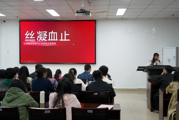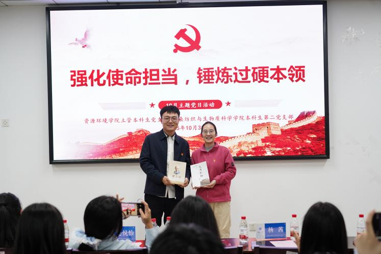 在支部特色活动环节,土管本科生党支部党员代表赵悦怡讲述了党史故事《刀尖上的舞者——沈安娜的潜伏人生》;学院本科生第二党支部党员代表彭丽作了“我的科研之路”科研分享《蚕丝生物材料的应用》,双方从红色历史与专业科研两个维度,为党员们注入了精神动力与学术启发。