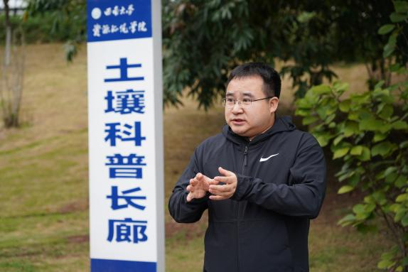 在资源环境学院的土壤文化长廊,土地科学与技术系教师王胜带领党员们学习了土壤形成、分类及在农业生产中的关键作用,深入探讨了土壤资源与蚕桑产业的“桑—蚕—土—农”的产业生态链,深化了学生对农业学科交叉融合助力乡村产业发展的理解。