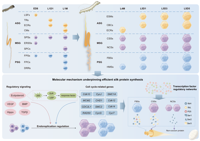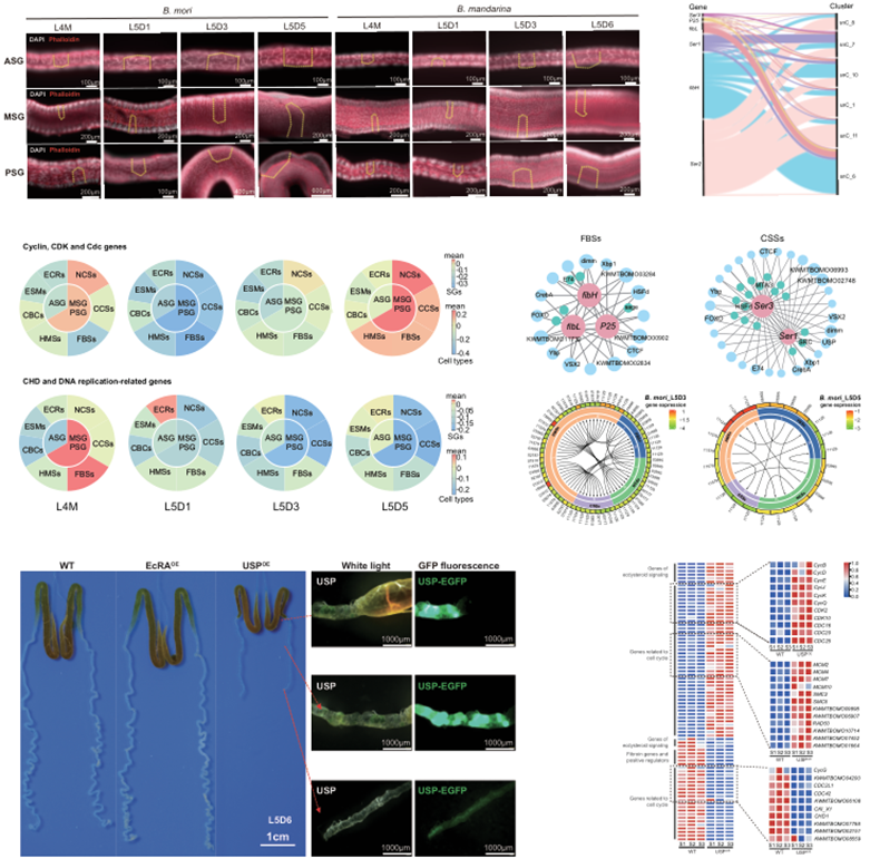 图3. 桑蚕丝腺细胞群发育动态和丝蛋白高效合成分子基础