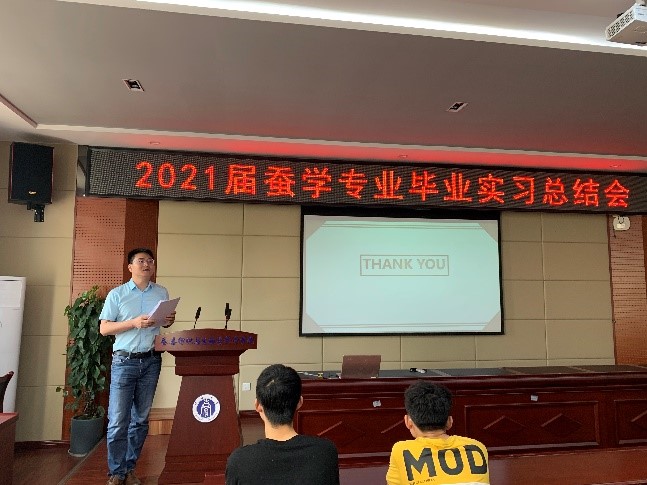 5月19日上午,2021届蚕学专业的全体学生在 在33教306又召开总结会。潘建龙、郭子健、潘淑娴等同学对实习经历进行了分享, 大家的经历各不相同,但都得到了一定的历练。实习带队成国涛老师对全体同学的实习作了点评,蚕学系主任王茜龄老师充分肯定了同学们踏实、认真的实习态度,吃苦耐劳、团结协作的精神,严格遵守学校、实习单位的规章制度,体现了班委的模范带头作用和同学们的责任担当,同时指出要增强主动性、积极参与实习的方方面面,并充分征求同学们对实习的意见,希望在以后的实习安排和组织方面 能够创新、务实、高效,达到人才培养的综合要求。
