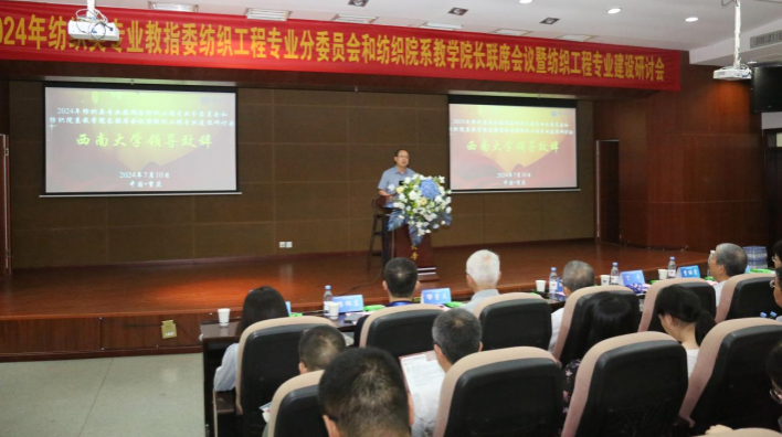 发布时间: 2024-07-14 12:52:19 已阅读:7月9-11日,2024年教育部高等学校纺织类专业教学指导委员会纺织工程专业分委员会和全国纺织院系教学院长联席会议暨纺织工程专业建设研讨会在动漫 蚕学宫举行。学校党委常委、副校长周光明出席开幕式并致欢迎辞。中国纺织服装教育学会会长倪阳生、教育部纺织类专业教指委主任郁崇文出席会议并讲话。纺织工程专业分教学指导委员会委员和来自全国40余所院校的纺织工程专业相关院系负责人、教师代表共120余人参加了此次会议。