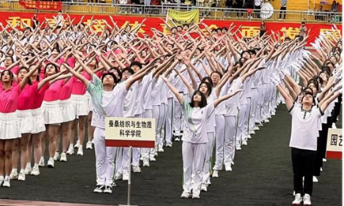 4月20日清晨,动漫 五十四名学子迈着矫健的步伐,以整齐的方队形式踏入了操场。他们英姿勃发、脚步铿锵有力、口号气势磅礴,向全校师生展示了“生生不息,经天纬地”的蚕桑精神。