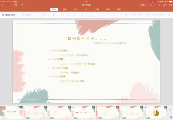 鲜佳琳首先介绍了自己丰富多彩的大学生活,对于大学生应该怎样度过四年时光,她认为应取决于自身的兴趣爱好,并向着自己心之所爱去奋斗。关于如何高效“内卷”,她提出两点建议:首先应确立自身的毕业目标。目标保研需要专注于学习成绩、科研项目、论文发表等等。出国留学则需要了解目标院校和专业的相关信息和要求。鉴于大一阶段作为新生对一切尚不了解这一情况,她提出在现阶段首先抓好学习,努力提升自己是正确的做法。其次应将学习作为第一要务,其它成果加分属于锦上添花。对于如何提升自己,她也提出了两点建议:一是积极参加学校活动,结交更多优秀的朋友;二是多学习一些技能,比如PS,PL,PPT等,把自己变成一个六边形战士。
