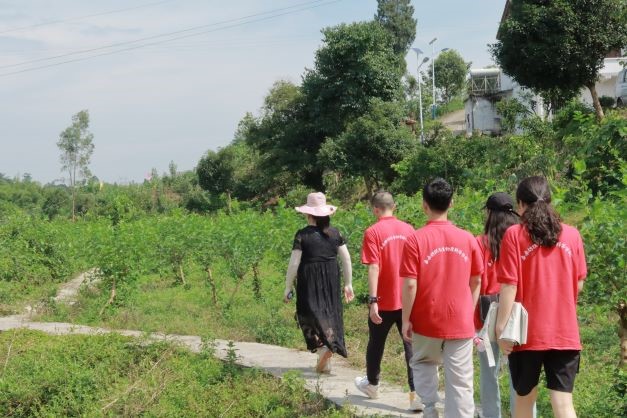 为深入贯彻专业知识与实践相结合,实践团一行前往江津区贾嗣镇五福村参访果桑基地。据当地村委会余吉利副书记说道,五福村果桑基地的发展对当地的扶贫攻坚具有重大意义,利用果桑基地来带动周边产业,是当地扶贫政策最重要的一环。这给村里带来了不少的人流量,不仅使得当地的土特产有了销路,果桑基地中简单的工作,也让闲赋在家的老人有了一份稳定的收入。余副书记还给实践团一行介绍了果桑基地中的桑葚品种、产量、售卖措施等具体情况,增长了实践团一行专业知识。