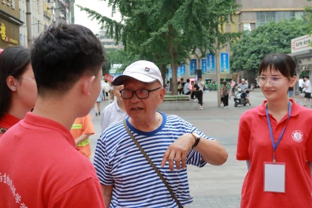 为了深入了解群众对党史及普通话的认识程度,实践团一行前往江津区几江街道开展党史宣讲和普通话推广实践活动。实践团一行通过散发传单、党史问答和绕口令等形式来进行党史宣讲和普通话推广实践活动,并与当地群众展开了深入交流,了解群众心中的看法与见解。此外,实践团一行还遇见了一位老学长(原西南农业大学生物技术学院学子),老学长寄语于实践团的同学们:普通话的推广任重而道远,需要你们不断努力,但看见你们在路上了,我们也就高兴了。