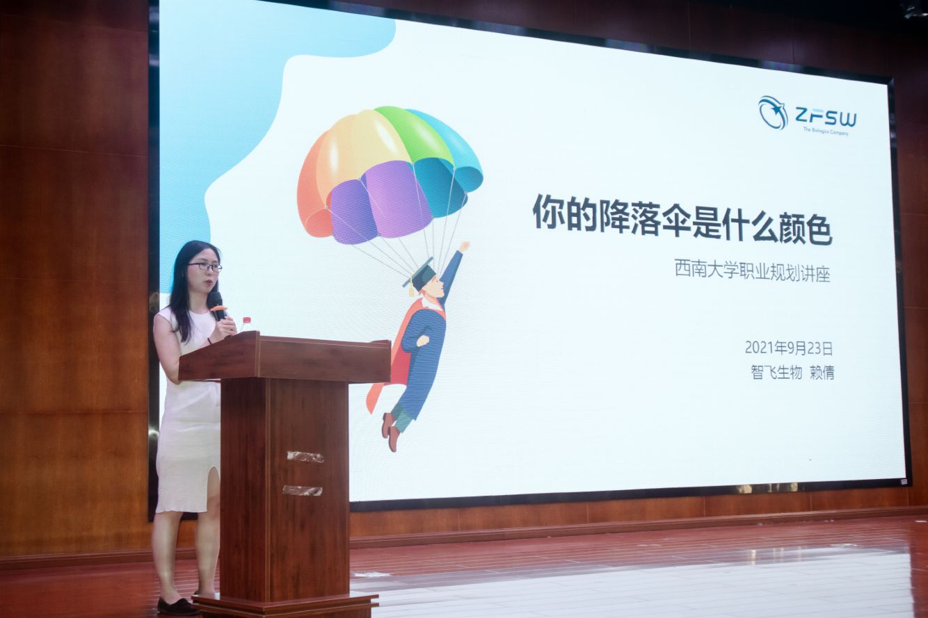 为更好地提升毕业生们的就业竞争力,了解行业形势,动员大会还特邀了重庆智飞生物科技有限公司人力资源副总监赖倩女士为毕业生们做了一场“你的降落伞是什么颜色?”的就业专题辅导,她从职业规划、简历包装和面试技巧等方面与同学们进行了交流和分享。