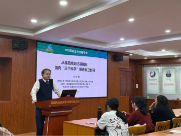 代院长以“种子是农业的‘芯片’”为引子,强调“一粒种子足以改变一个世界”,增强大家对种质资源重要性的认识。他介绍了家蚕基因库的发展历程,鼓励同学们从源头出发,循序渐进,坚定“打好种业翻身仗”的信念,勇于突破“卡脖子”技术瓶颈,将个人成长融入国家战略需求的大潮中。