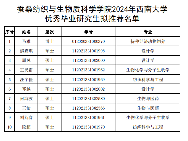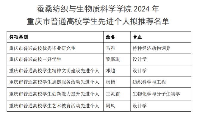 关于动漫 2024年动漫 优秀毕业研究生及重庆市普通高校学生先进个人拟推荐名单公示