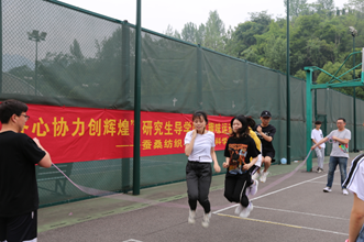 研究生导学团队趣味运动会在“团结就是力量”拔河比赛中拉开帷幕,随后是“坚持就是胜利”跳长绳,“两人三足”重走“长征路”,“勇往直前”背对背夹气球接力、“百折不挠”定点投篮以及“自强不息”快乐套圈比赛,参赛的老师和研究生情绪高昂,齐心协力,奋勇争先,在团结协作中取得一个又一个胜利。活动现场,加油声、呐喊声、欢笑声不绝于耳,展现了学院研究生生机勃勃、积极向上的精神风貌。比赛结束后,由曾鸣鸣副书记为获奖团队颁发奖品,本届研究生导学趣味运动会圆满落下帷幕。
