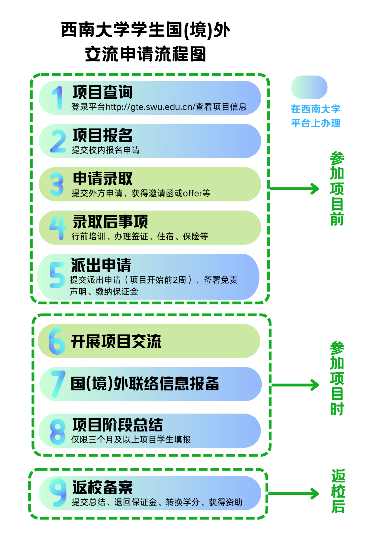 参加项目同学需根据动漫 学生国(境)外交流申请流程(附件5),登录学生全球化学习管理平台//gte.dongman8.net/完成报名、派出及返校相关流程。